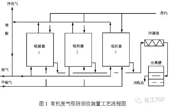 活性炭纖維吸附有機廢氣是當今世界上最為先進的技術(shù)之一,活性炭纖維比顆粒狀活性炭具有更大的吸附容量和更快的吸附動力學性能,活性炭吸、脫附工藝流程見圖1。