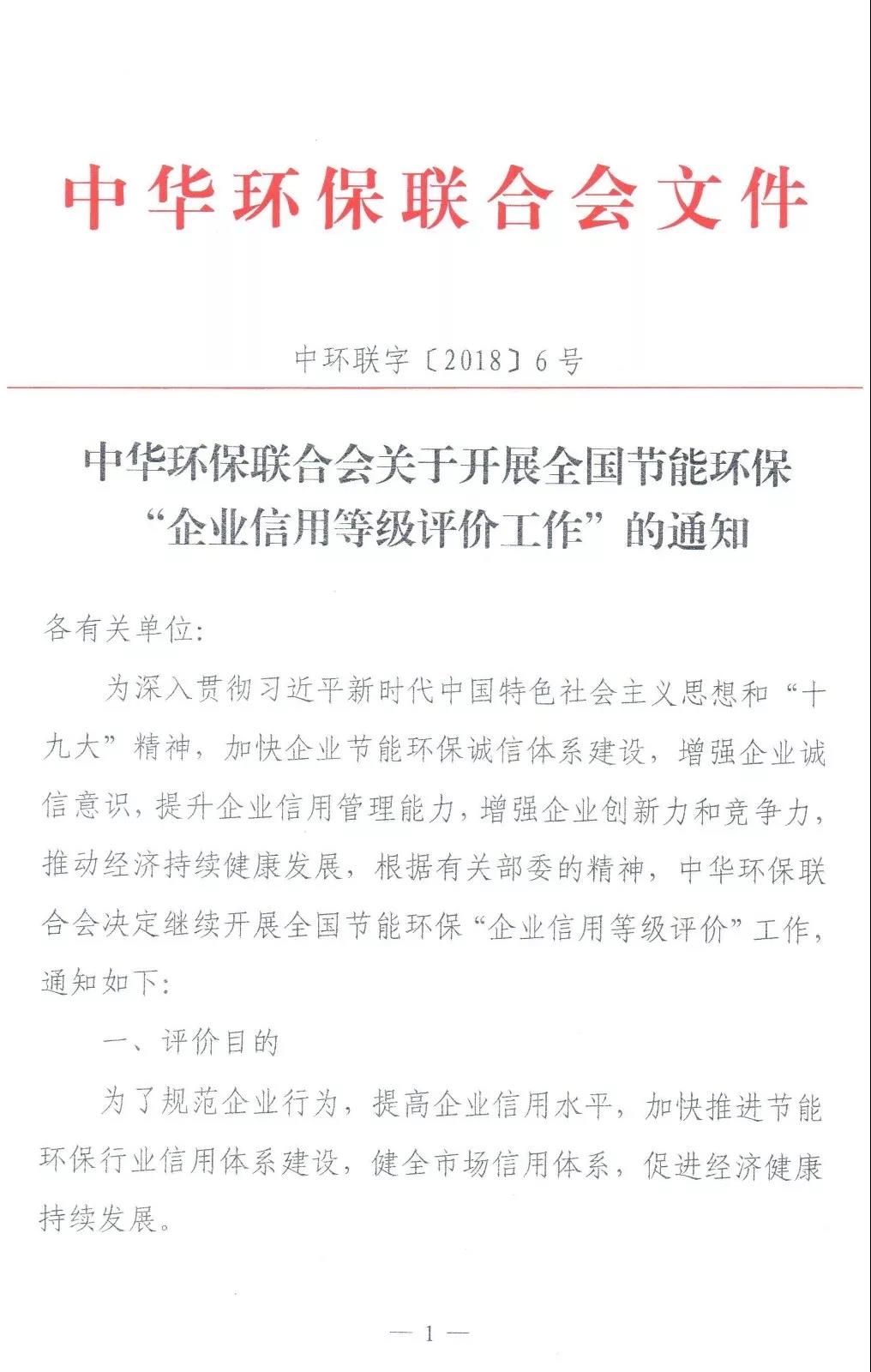 根據(jù)有關(guān)部委文件精神,中華環(huán)保聯(lián)合會組織開展2018年度全國節(jié)能環(huán)保行業(yè)企業(yè)信用等級評價工作。經(jīng)企業(yè)自愿申報,我會本著“公開、公正、公平”的原則,嚴(yán)格按照信用評價程序,經(jīng)第三方信用服務(wù)機(jī)構(gòu)評審、聯(lián)合會信用評價辦公室審核,2018年度第六批企業(yè)信用評價工作已經(jīng)完成。